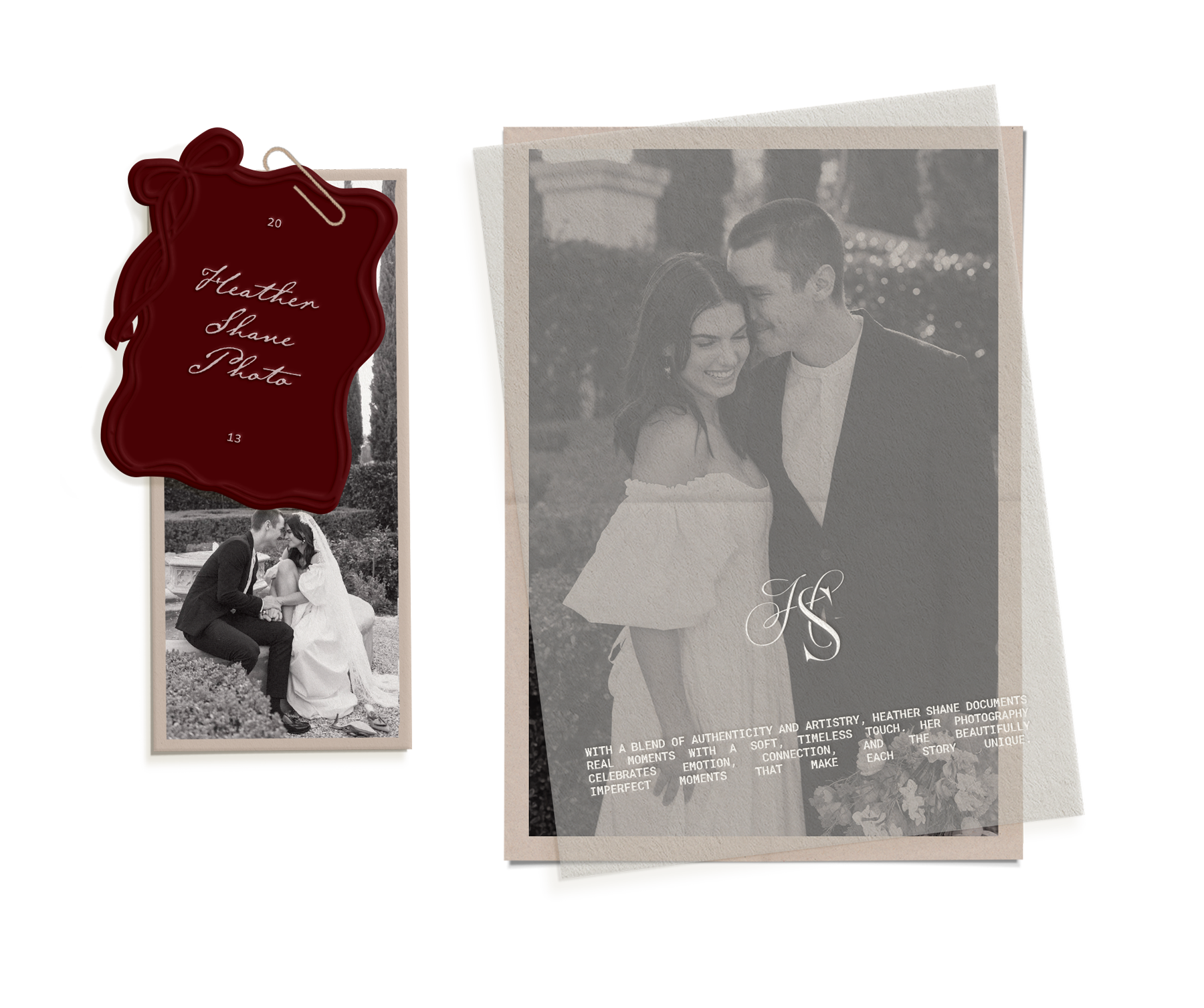 The brand design reflects this vision through a soft, editorial aesthetic that mirrors Heather's style: clean, refined, and gracefully understated. Combining elegant typography with a modern, airy palette, the identity enhances the feeling of luxury and intimacy found in every frame she captures.